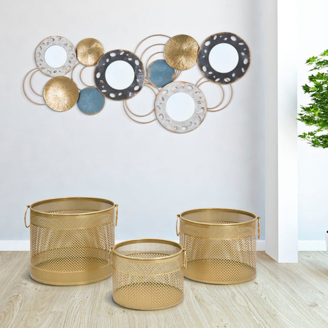 P/VASI CAGE TRIS - Set di 3 portavasi in metallo dorato. L'elegante lavorazione a rete dona un tocco di leggerezza ad ogni ambiente.