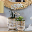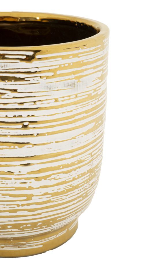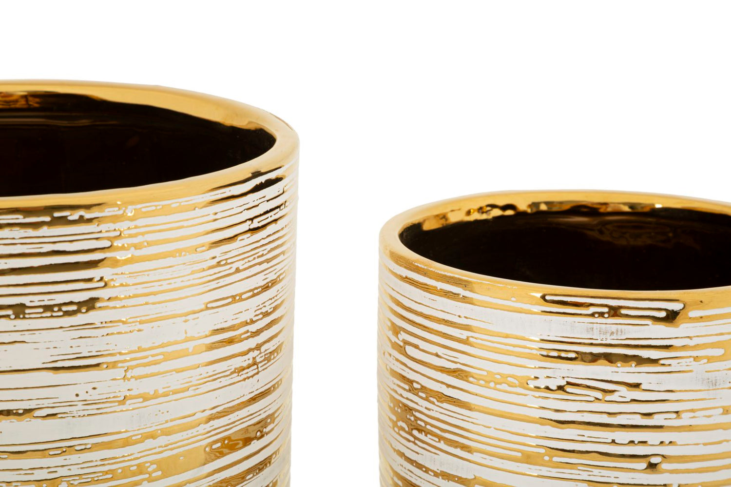 Set di due vasi in ceramica con eleganti decorazioni dorate in rilievo.