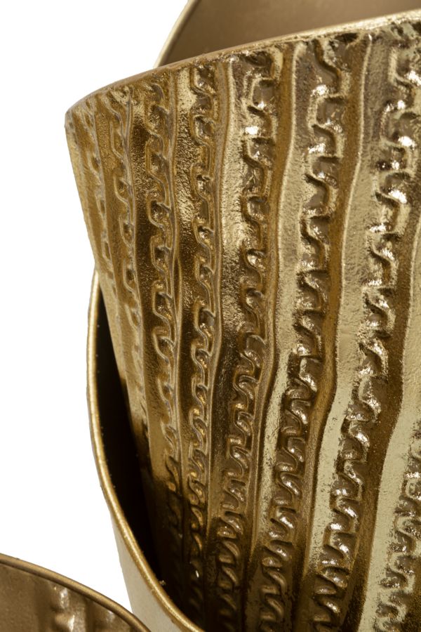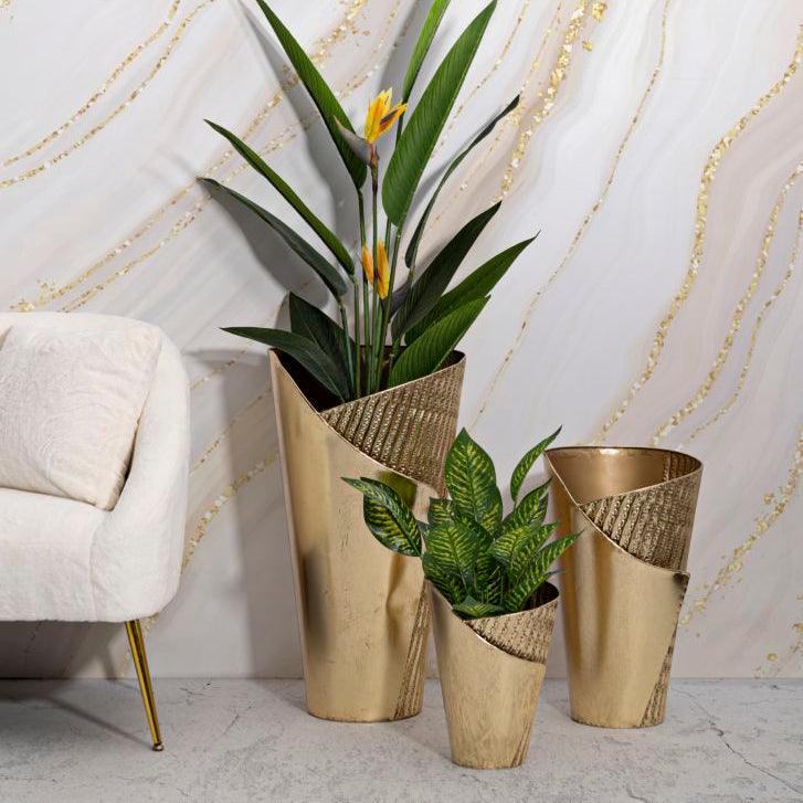 Set di 3 eleganti vasi dorati, perfetti per decorare ogni ambiente con stile e raffinatezza. Ideali per piante o come elementi decorativi singoli.
