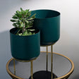 Set di due porta vasi verde con base dorata, elegante e moderno, ideale per valorizzare piante con stile e raffinatezza.