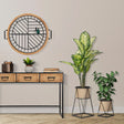 P/VASI OSAKA COPPIA - Coppia di portavasi rotondi in metallo color crema con intagli che richiamano la paglia di Vienna, competi di piedistallo in metallo nero. Il portavasi è removibile.