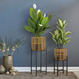 P/VASI RATTAN COPPIA - Coppia di portavasi rotondi con piedistallo in metallo nero dal design semplice e lineare e ciotole in rattan dal design classico ma accattivante. Le ciotole sono removibili.