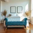 PANCHETTA PARIS OTTANIO/GOLD - Panca in legno e velluto color ottanio. Maestose sedute dalla finitura dorata che si ispirano ai camerini delle grandi dive di Hollywood. Ideali da collocare in camera da letto o in salotto per sentirsi delle star.
