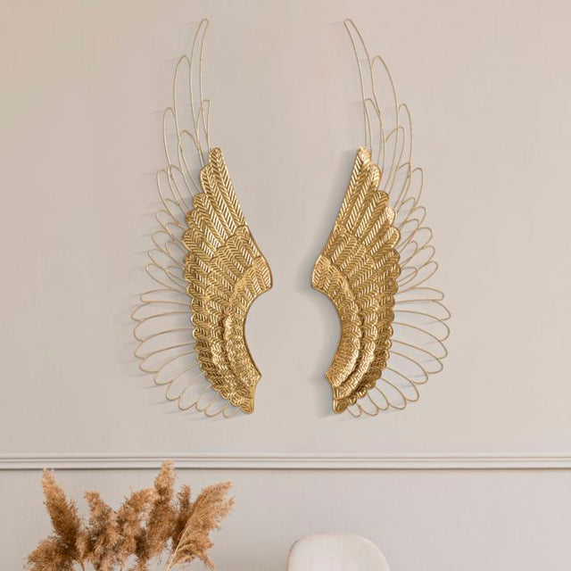 Un complemento d’arredo simbolico ed elegante: queste ali d’angelo in metallo dorato uniscono raffinatezza e leggerezza, grazie al design slanciato e alla lavorazione traforata che richiama piume stilizzate. Perfette per chi ama decorazioni moderne con un significato profondo.