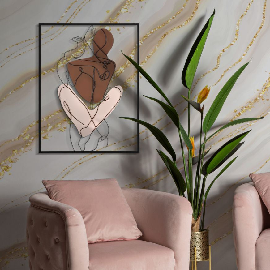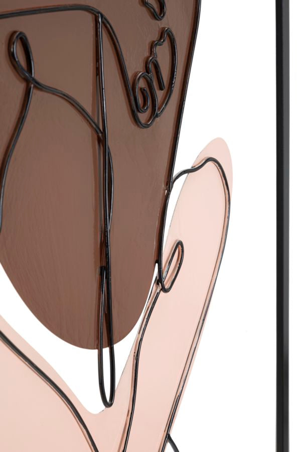 Pannello decorativo 3D da parete in metallo dalle linee morbide che vanno a comporre la figura di una coppia. Impreziosito da inserti colorati che donano luminosità.