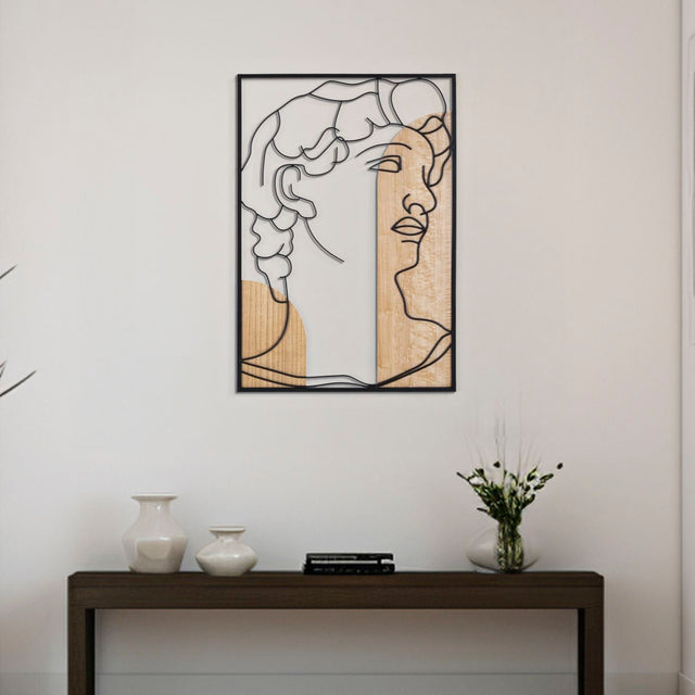 Pannello decorativo 3D da parete in metallo e legno che raffigura il David. I toni caldi si accostano perfettamente ad ogni tipologia di arredo.