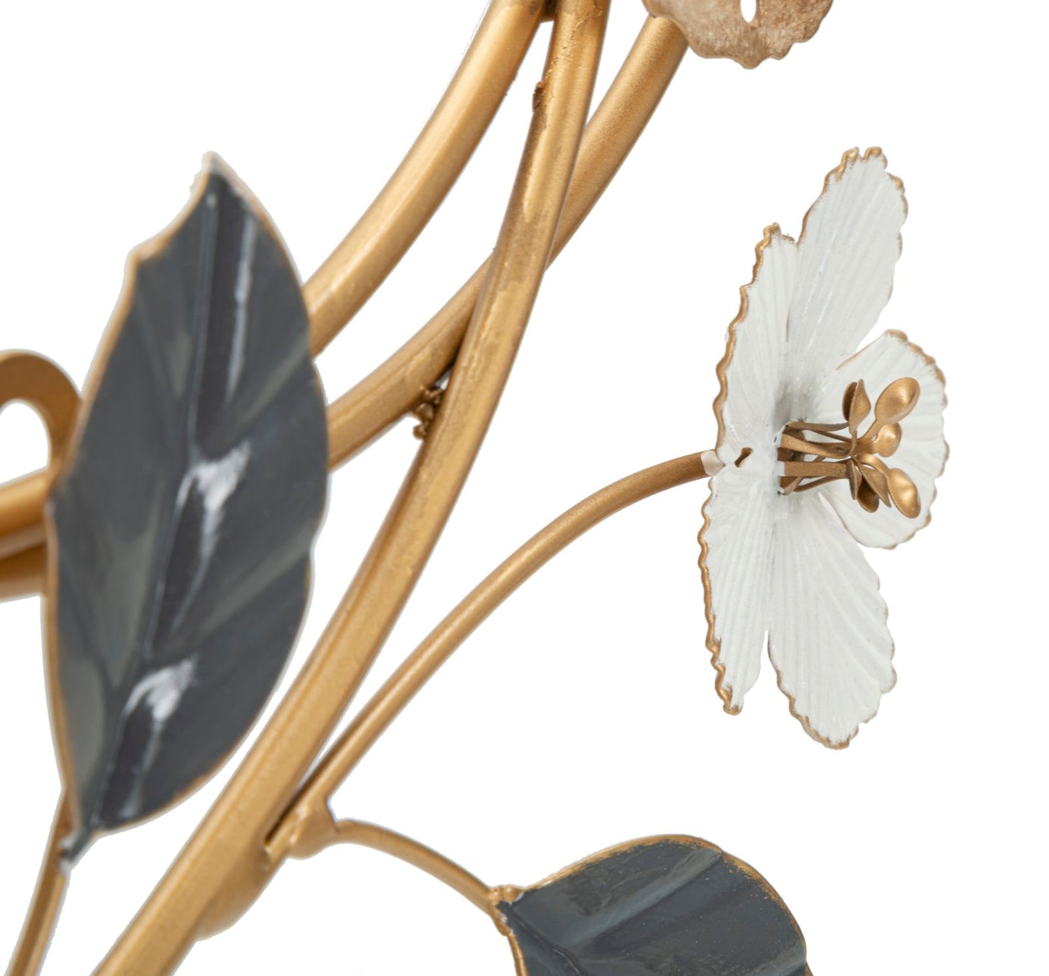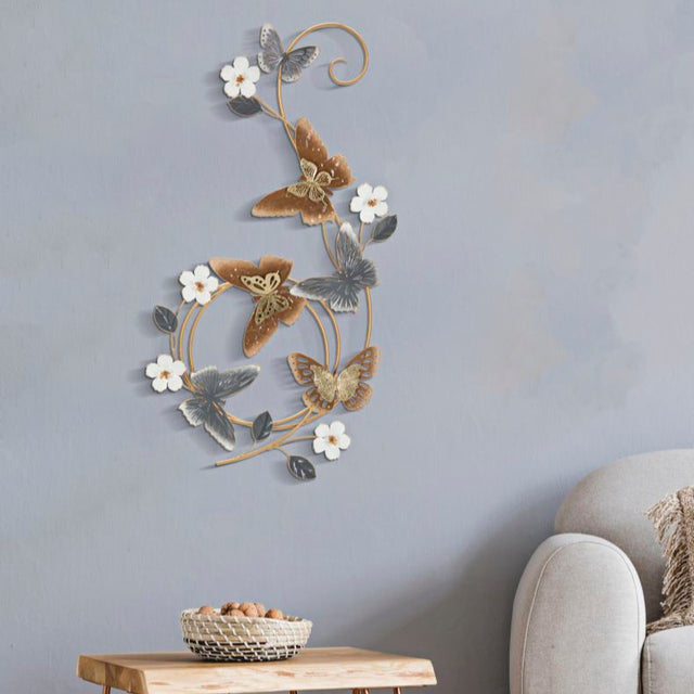 Una decorazione elegante e romantica che unisce la leggerezza delle farfalle e la delicatezza dei fiori bianchi. Realizzata interamente in metallo con dettagli tridimensionali e finiture dorate, dona movimento e luminosità alle pareti di casa.