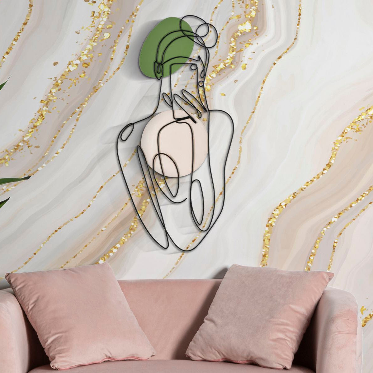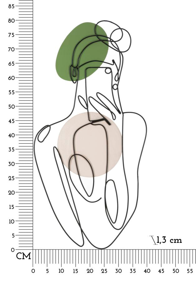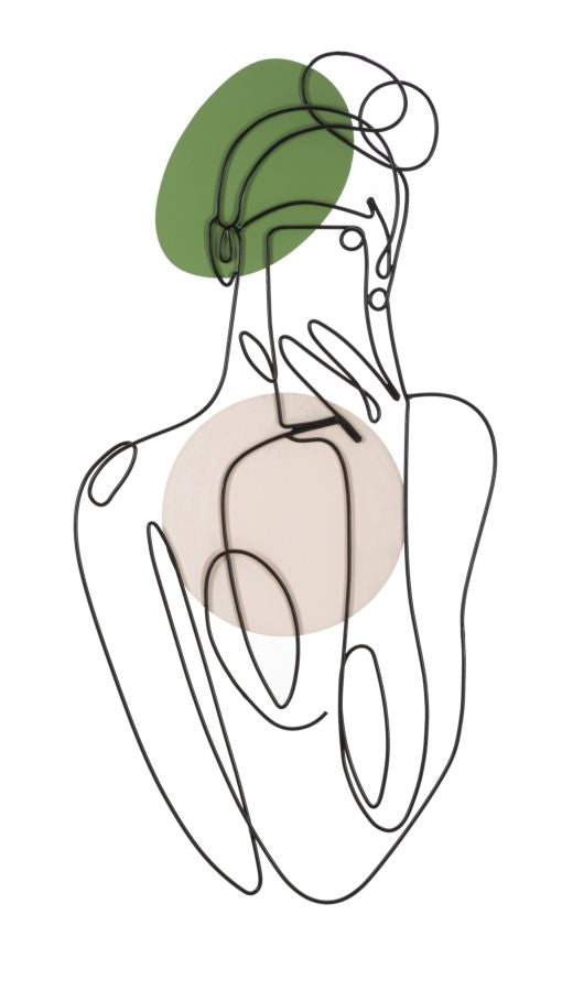 Pannello decorativo 3D da parete in metallo nero dai tratti delicati che vanno a comporre la figura di una ragazza con il suo cellulare. Impreziosito da parti colorate che donano luminosità.