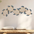 Pannello decorativo 3D da parete in metallo e legno raffigurante delle tartarughe marine che nuotano.