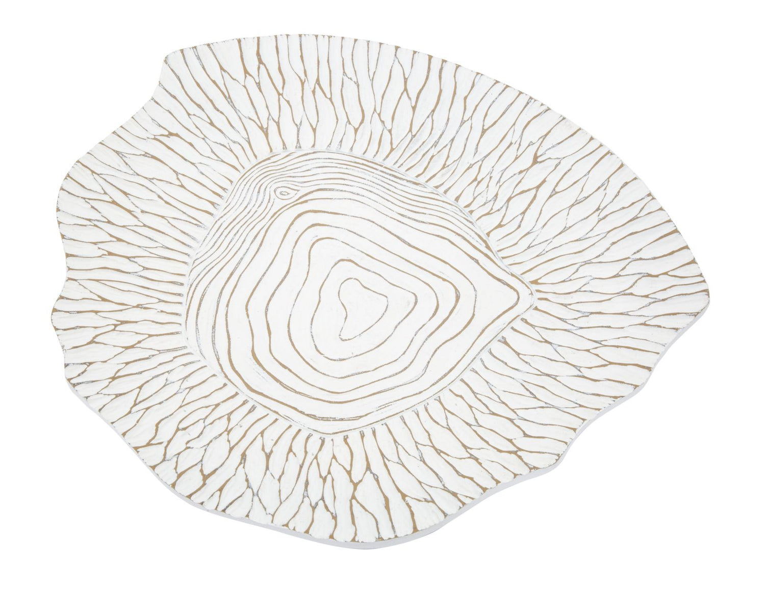Piatto portaoggetti dalla forma irregolare impreziosito da eleganti intagli.
