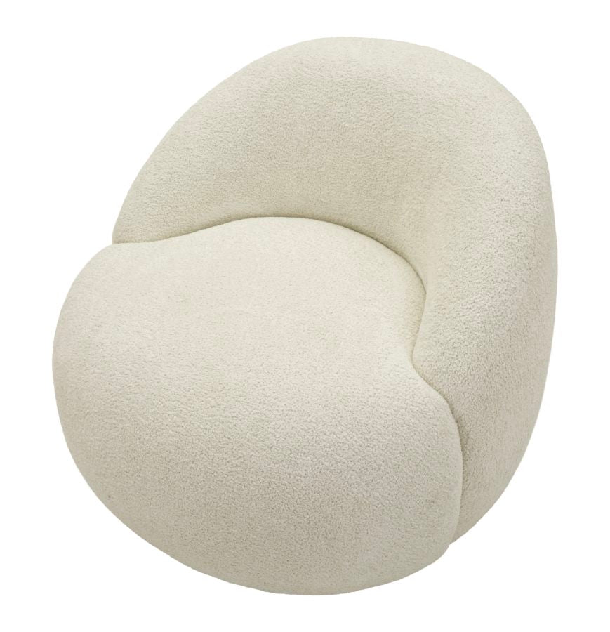 Forme rotonde, tessuto bouclé e morbidezza avvolgente. La poltrona Ginevra è un invito al relax, un elemento di design che combina estetica scandinava e comfort assoluto.