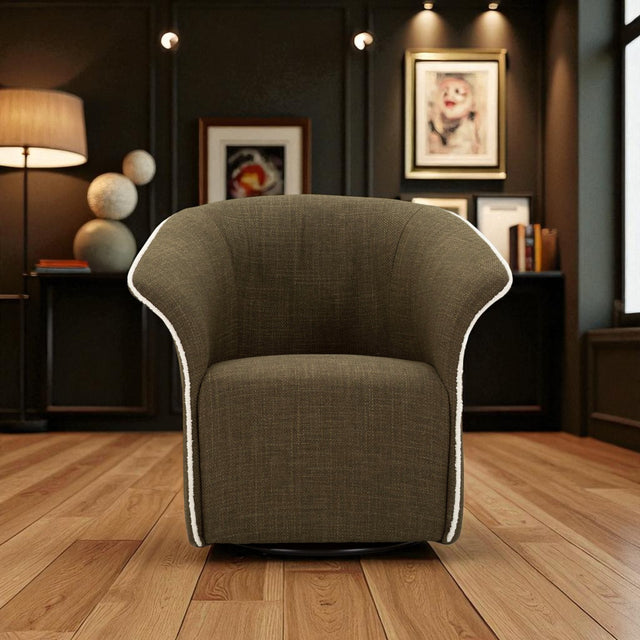 La Poltrona Girevole Siena Verde unisce comfort ed eleganza. Il design avvolgente, il rivestimento in tessuto verde e il bordo decorativo la rendono perfetta per ambienti raffinati. La base girevole aggiunge funzionalità e versatilità, ideale per spazi glamour e moderni.