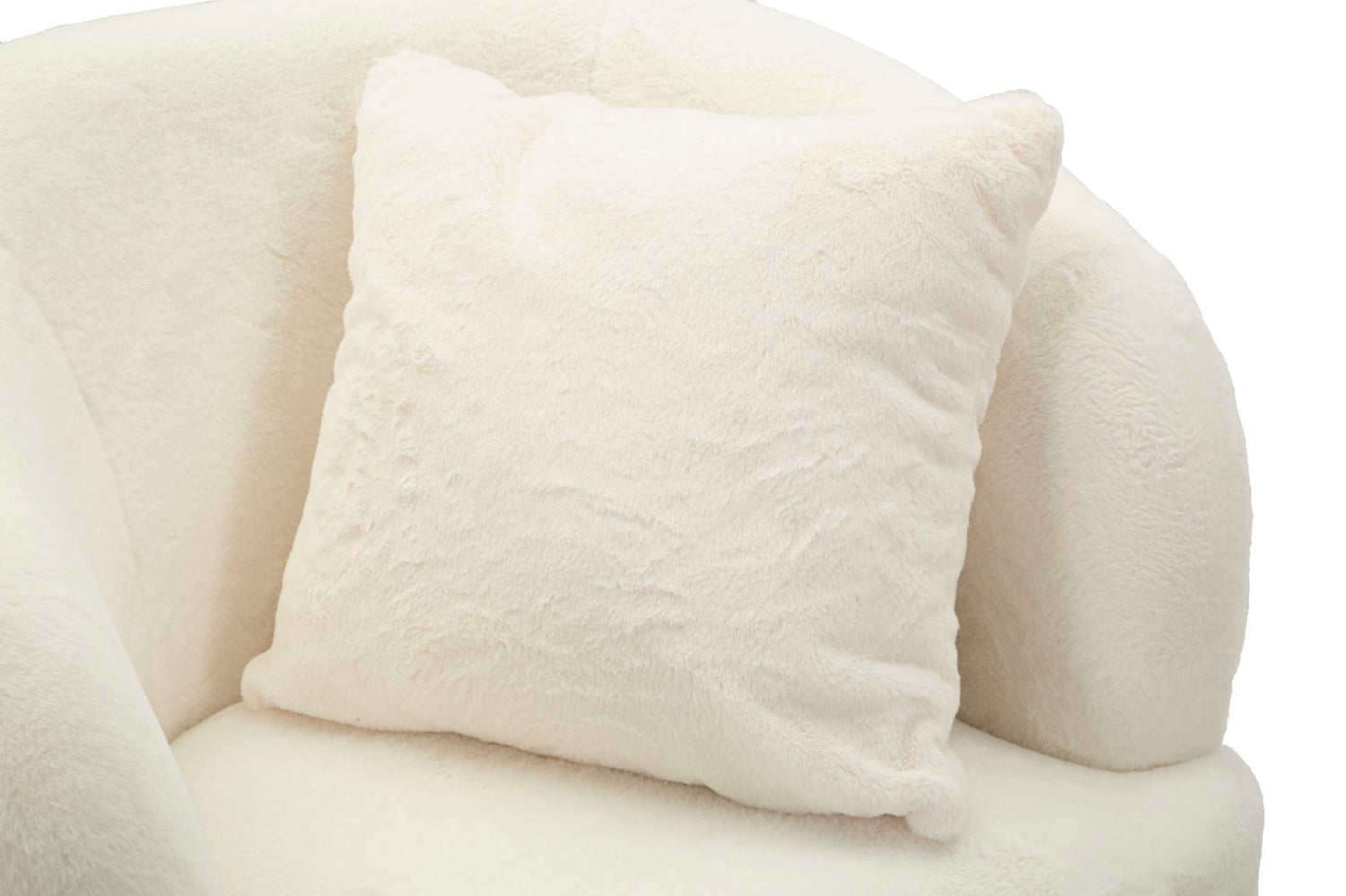 Poltrona bianca con gambe dorate da assemblare, rivestito in morbida pelliccia sintetica. Ideale per ambienti moderni e raffinati, aggiunge un tocco di lusso e comfort.