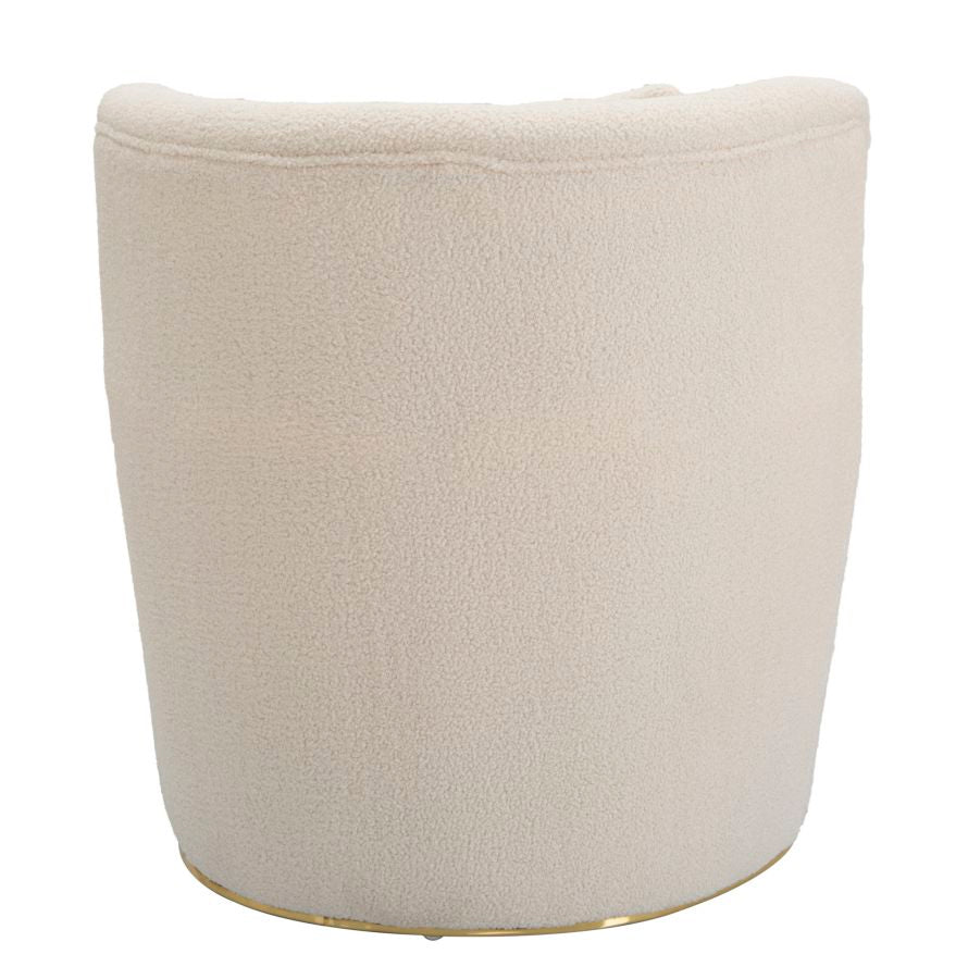 POLTRONCINA ICELAND - Elegante poltroncina rotonda in tessuto imbottito con schienale, dalle linee semplici ed essenziali e impreziosita da decorazioni dorate. Completa di cuscino.