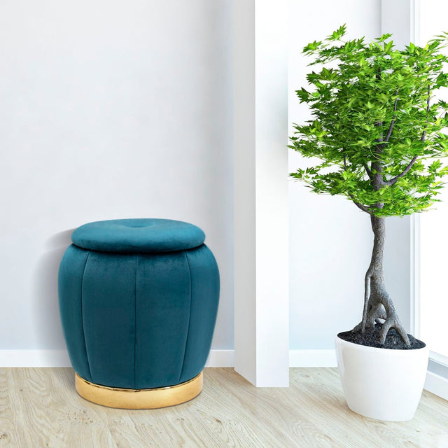 PUFF/CONTENITORE PARIS OTTANIO/GOLD - Pouf contenitore in legno e velluto color ottanio. Sedute dalla finitura dorata che si ispirano ai camerini delle grandi dive di Hollywood. Ideali da collocare in camera da letto o in salotto per sentirsi delle star.