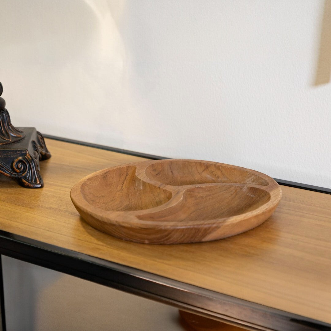 Elegante e sostenibile, svuotatasche in teak riciclato, realizzato a mano, con tre scomparti, unisce bellezza rustica e funzionalità. Ogni pezzo racconta una storia di artigianato e cura, portando un tocco di calda eleganza al tuo spazio.