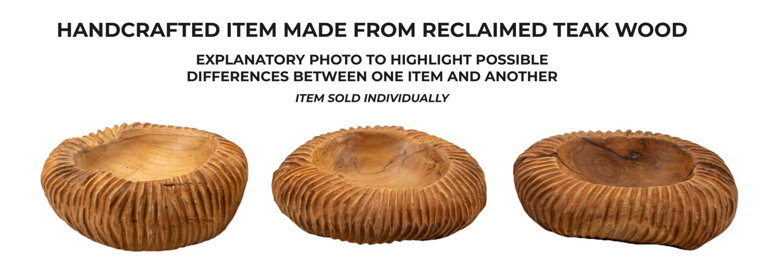 Elegante e sostenibile, questo svuotatasche in teak riciclato, realizzato a mano, incanta con i suoi bordi intagliati e il calore naturale del legno. Un piccolo gioiello artigianale che unisce bellezza e funzionalità.