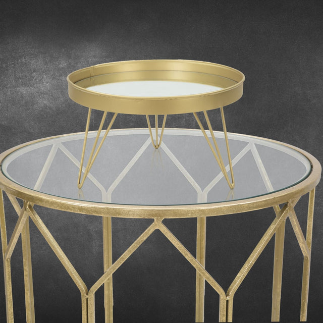 S/TASCHE GLAM GOLD/MIRROR - Svuotatasche in metallo con piano in vetro specchiato. Elementi dalle linee sottili e dai colori trend. Impreziosiscono con gusto il living o l'ingresso.