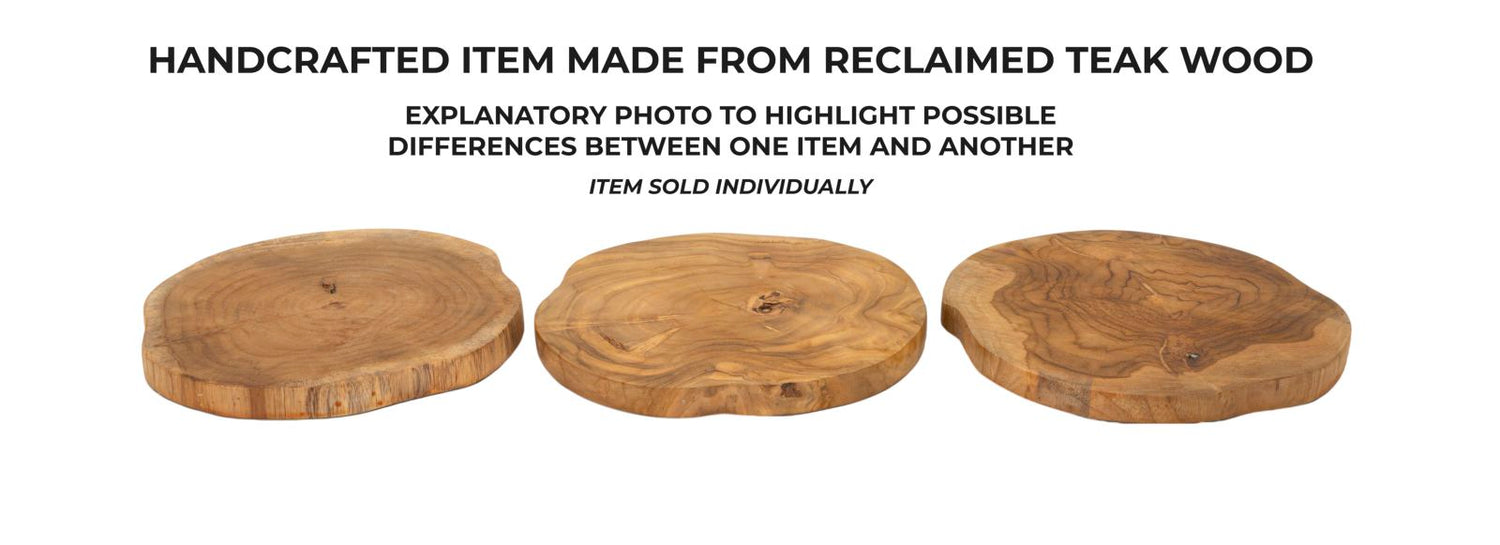 Elegante e sostenibile, questo svuotatasche tondeggiante in teak riciclato realizzato a mano, unisce raffinatezza e praticità. La sua superficie liscia e le curve armoniose donano un tocco di calore e classe a qualsiasi spazio.