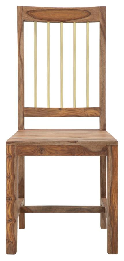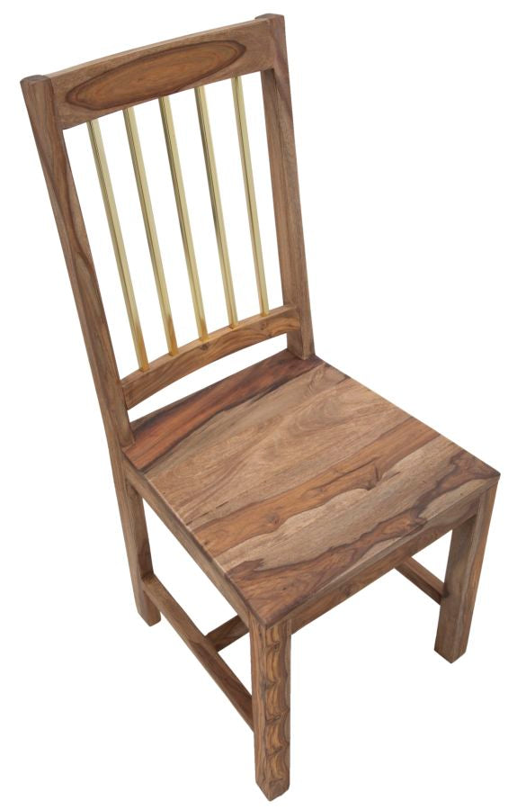 SEDIA ELEGANT SHEESHAM SET 2 PZ - Sedia in legno di sheesham con particolari in metallo dorato. Il legno di sheesham anche detto legno di rosa indiano ha la caratteristica di essere molto resistente. Un materiale ideale per mobili dalle linee essenziali fatti per durare nel tempo e aldilà delle mode.