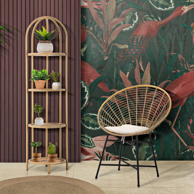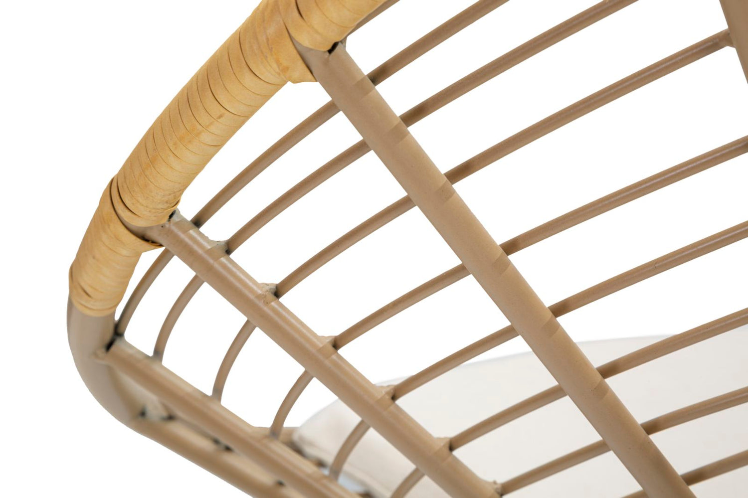 Un mix di comfort e stile naturale! Questa sedia dallo stile boho chic presenta una struttura solida in metallo verniciato nero e una seduta intrecciata effetto rattan, completa di cuscino chiaro removibile per il massimo comfort. Perfetta per soggiorno, veranda, angolo lettura o ambienti in stile moderno e naturale.
