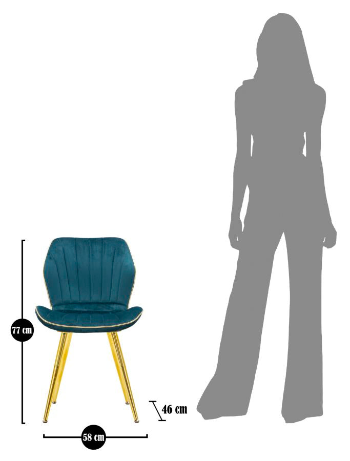 SEDIA PARIS SPACE OTTANIO/GOLD SET 2 PZ - Coppia di sedie imbottite in velluto sintetico color ottanio complete di comodo schienale. Le rifiniture dorate donano un tocco di luce e lo rendono un perfetto connubio tra eleganza e comodità.