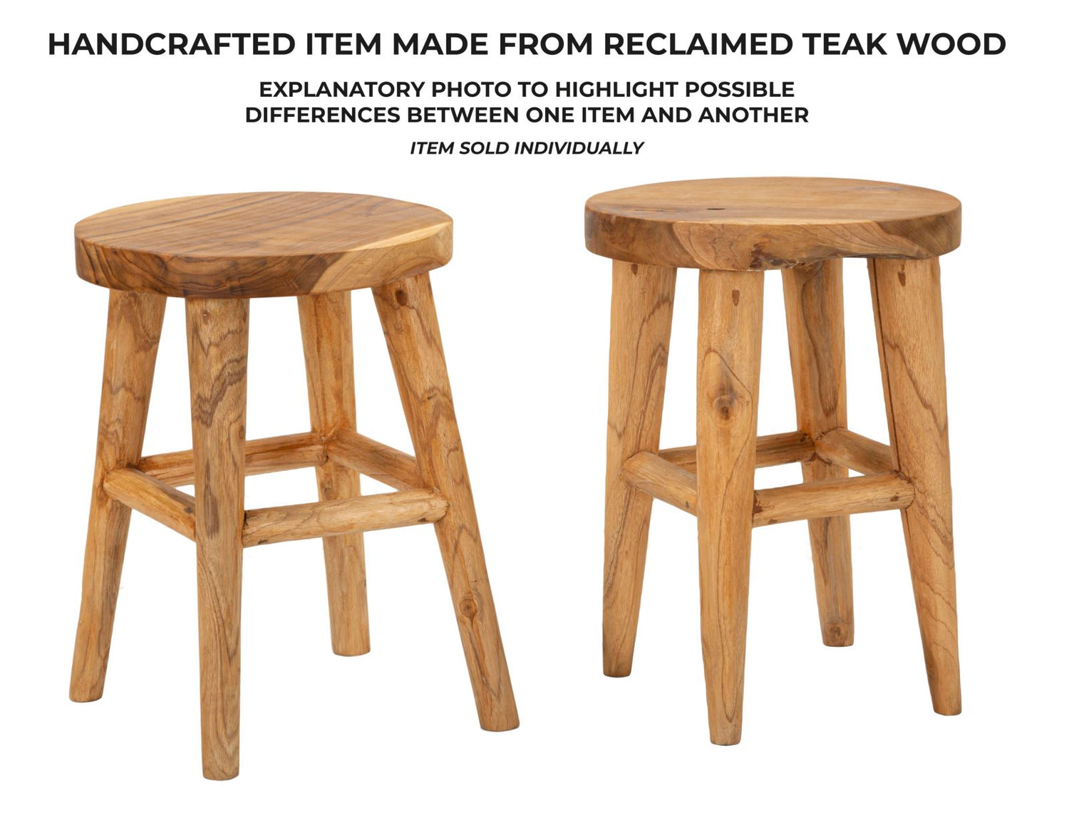 Sgabello in teak riciclato offre un tocco di eleganza naturale e sostenibile. Con il suo legno dal carattere unico, infonde calore e stile in ogni ambiente, evocando un senso di autenticità e charme senza tempo.