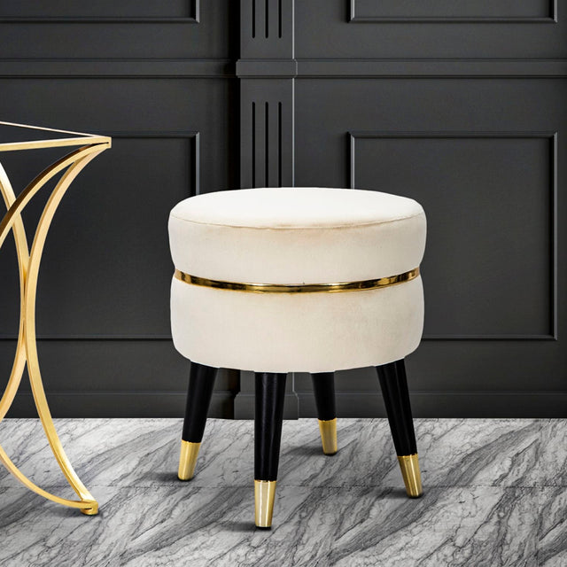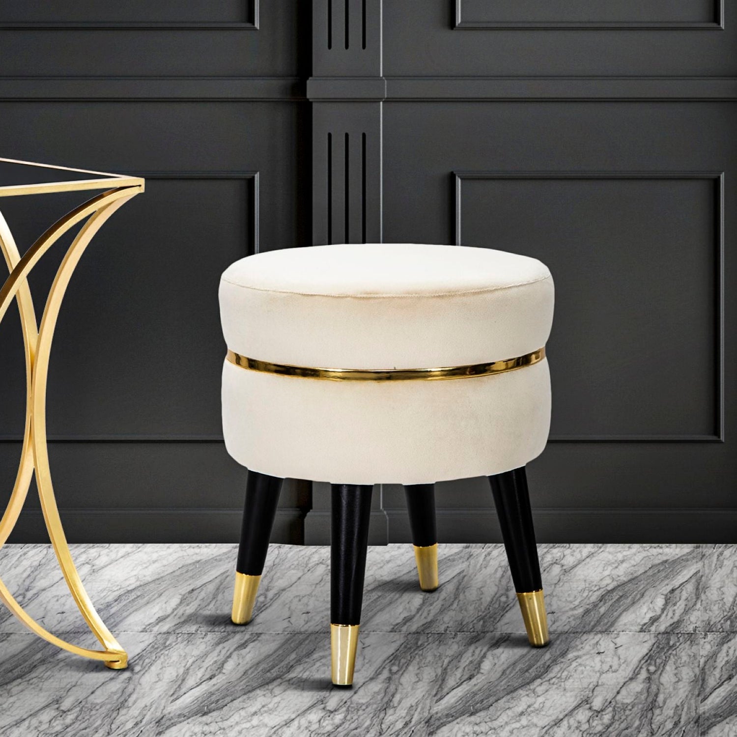 SGABELLO PARIS CREMA/GOLD - Sgabello in legno e velluto crema. Sedute dalla finitura dorata che si ispirano ai camerini delle grandi dive di Hollywood. Ideali da collocare in camera da letto o in salotto per sentirsi delle star.