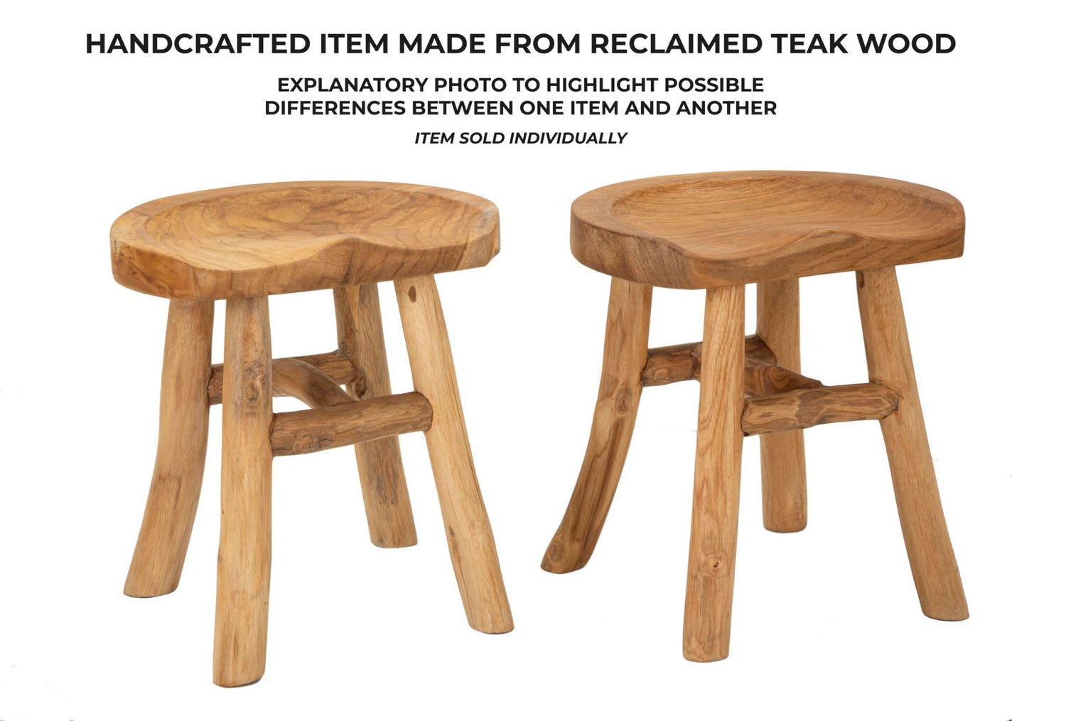Sgabello in teak riciclato offre un tocco di eleganza naturale e sostenibile. Con il suo legno dal carattere unico, infonde calore e stile in ogni ambiente, evocando un senso di autenticità e charme senza tempo.