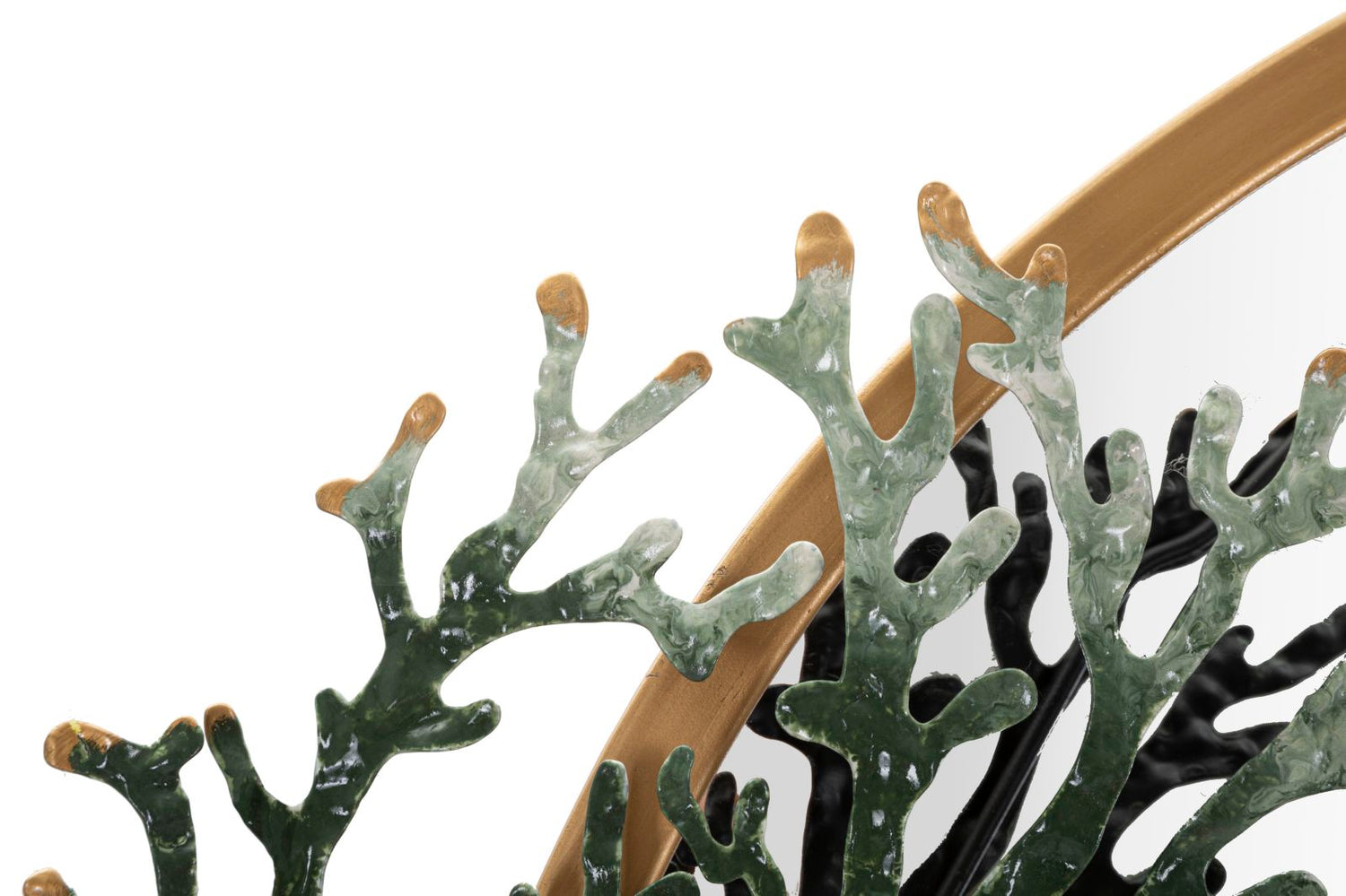 La cornice in metallo dello specchio è arricchita da dettagli tridimensionali con coralli, pesci e una stella marina, che donano movimento e carattere all’ambiente. Perfetto come punto focale in soggiorno, ingresso o bagno, questo specchio unisce funzionalità e design artistico, creando un’atmosfera unica che richiama i fondali marini.