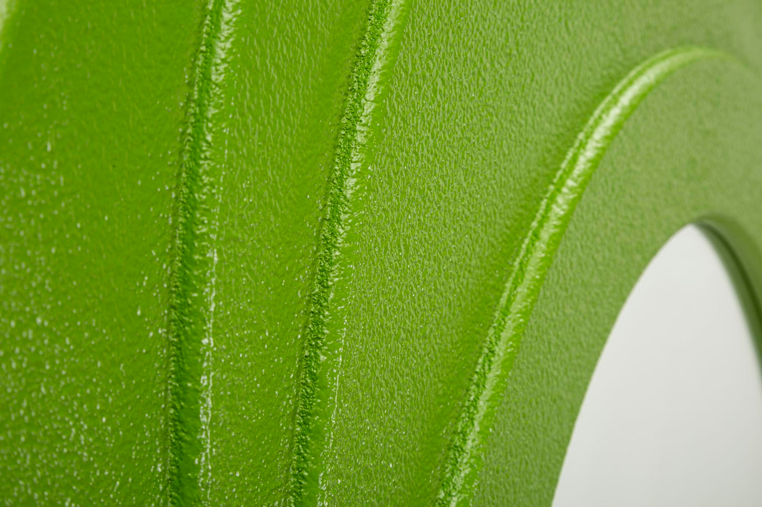 Specchio da parete verde dalle forme sinuose, perfetto per dare un tocco moderno a qualsiasi ambiente. Ideale per aggiungere un tocco di creatività e stile alle pareti di casa tua.