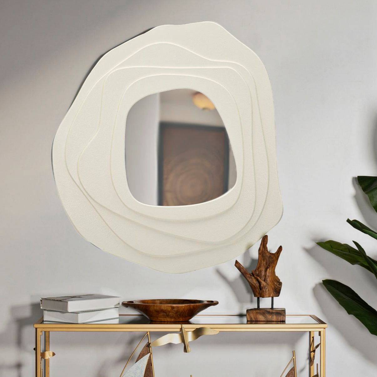 Specchio da parete bianco dalle forme sinuose, perfetto per dare un tocco moderno a qualsiasi ambiente. Ideale per aggiungere un tocco di creatività e stile alle pareti di casa tua.