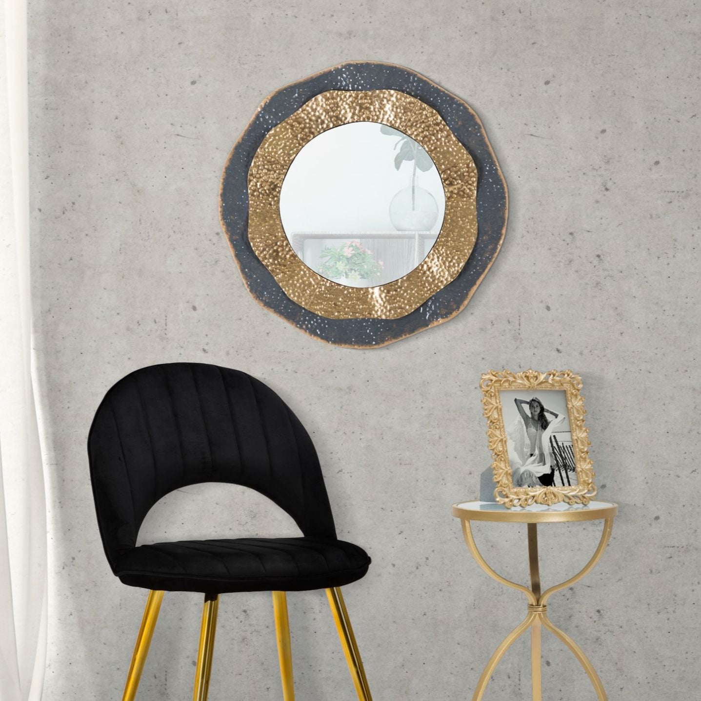 SPECCHIO DA MURO SHAI DARK - Specchio da parete con cornice in metallo. Il contrasto tra l'oro e i toni scuri insieme al design sinuoso e irregolare donano un tocco di fascino ad ogni ambiente.