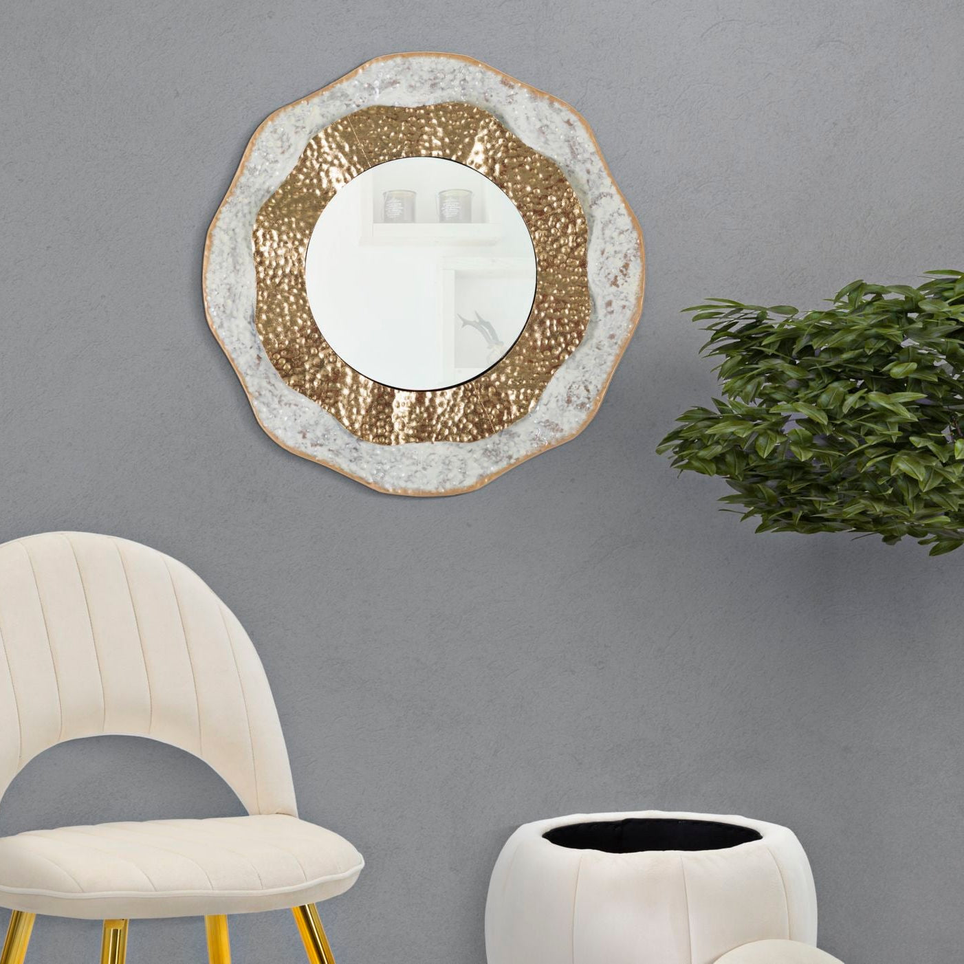 SPECCHIO DA MURO SHAI LIGHT - Specchio da parete con cornice in metallo. Il contrasto tra l'oro e i toni chiari insieme al design sinuoso e irregolare donano un tocco di fascino ad ogni ambiente.