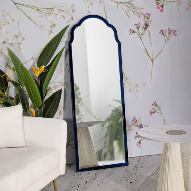 Un complemento d’arredo audace e sofisticato. La cornice blu lucido con profilo sagomato crea un effetto raffinato e deciso, perfetto per interni moderni e originali. Disponibile in versione rettangolare e da terra, aggiunge profondità e personalità a qualsiasi ambiente.