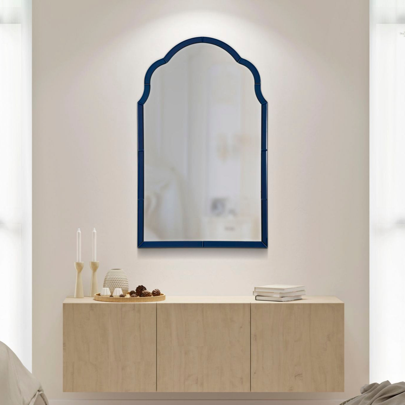 Lo Specchio da Muro Tangeri Blu è realizzato in vetro con una raffinata cornice sagomata dal profilo curvo. Il suo design elegante e la tonalità blu profondo lo rendono ideale per ambienti sofisticati, aggiungendo luminosità e un tocco di stile distintivo.