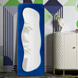 SPECCHIO DA MURO THEODOR BLU - Specchio da parete con cornice in legno rivestita in velluto blu elettrico, ideale per un tocco chic e vintage nell'arredamento domestico o in ambienti dal design raffinato.