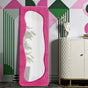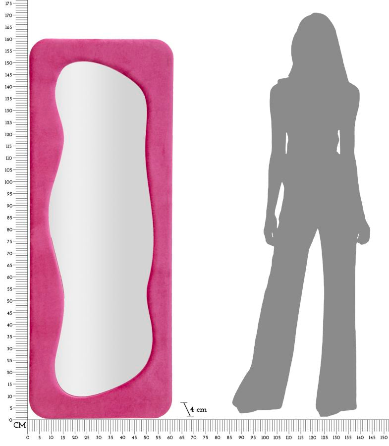 SPECCHIO DA MURO THEODOR FUXIA CM 60X4X160 - Specchio da parete con cornice in legno rivestita in velluto fucsia, ideale per un tocco chic e vintage nell'arredamento domestico o in ambienti dal design raffinato.
