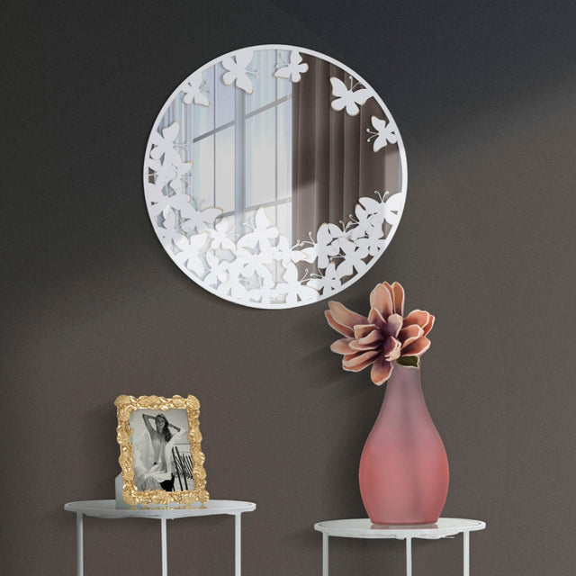 Un complemento d’arredo delicato e raffinato, capace di donare luce e poesia a qualsiasi ambiente. Questo specchio rotondo presenta una cornice decorata con farfalle tridimensionali dal design elegante e leggero. Perfetto per camere da letto, ingressi o ambienti femminili, regala un tocco romantico e sognante alla parete.