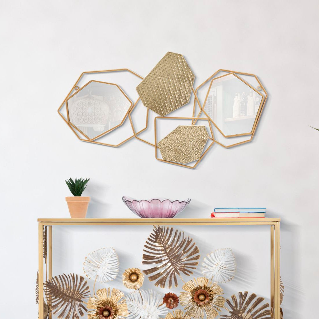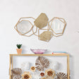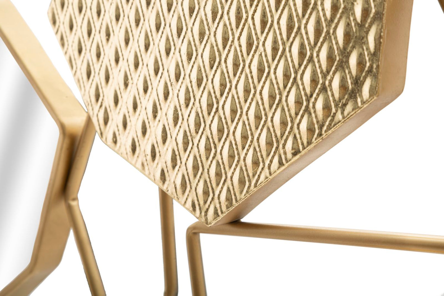 SPECCHIO STONE - Composizione da parete con specchi dal design geometrico che richiama il cubismo. Un complemento che dona luminosità grazie al metallo dorato ed eleganza.