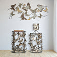 TAVOLINETTI FARFALLE COPPIA - Coppia di tavolinetti rotondi in metallo e vetro con decorazioni a forma di farfalle. Le linee semplici unite alle particolari decorazioni lo rendono un elemento particolare per rendere unica ogni stanza.