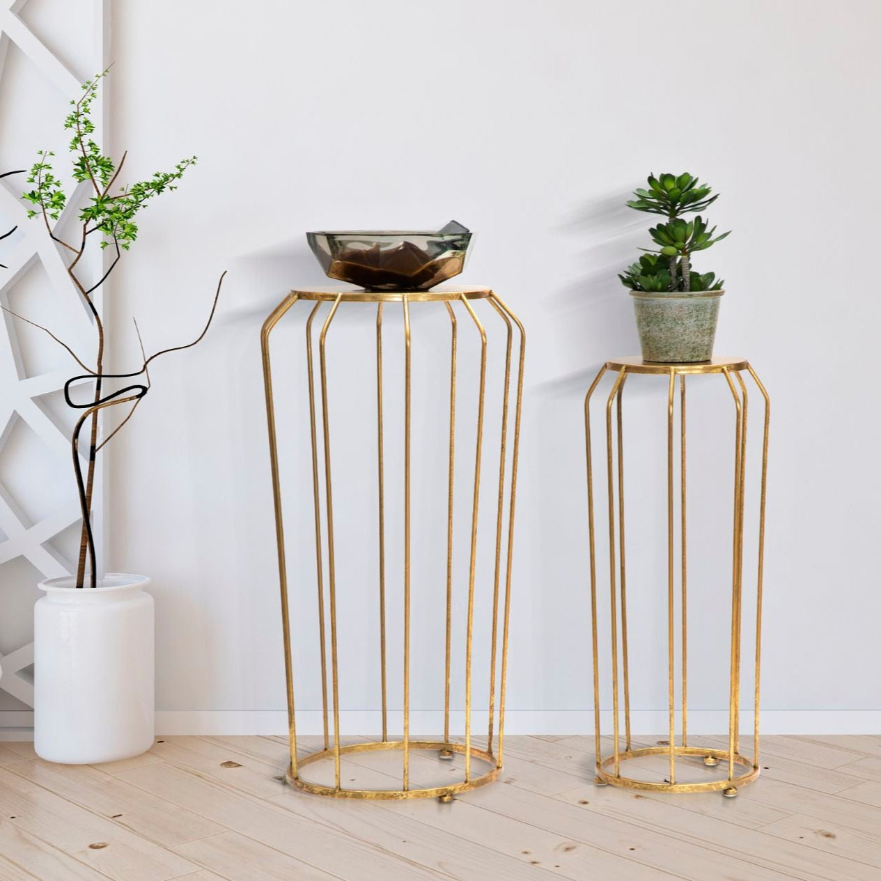 TAVOLINETTI THING COPPIA - Coppia di tavolinetti in metallo dorato dalle linee semplici ed essenziali. Un tocco di classe per ogni living senza appesantire troppo.