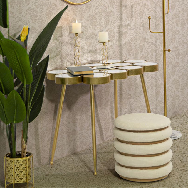 Questo tavolino presenta una struttura interamente in metallo color oro, con un piano formato da cerchi multipli rifiniti a specchio, che creano un sorprendente effetto tridimensionale. Perfetto come tavolino da salotto, consolle d’appoggio o elemento decorativo, aggiunge luminosità e carattere a qualsiasi ambiente moderno o glamour.