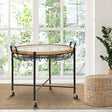 TAVOLINETTO CEBU C/VETRO E RUOTE - Tavolo basso rotondo con struttura in metallo nero e piano in vetro incorniciato in un intreccio di rattan. Pratiche rotelle ne facilitano lo spostamento. Il design semplice ma accattivante lo rende un complemento perfetto per ogni tipologia di arredo.