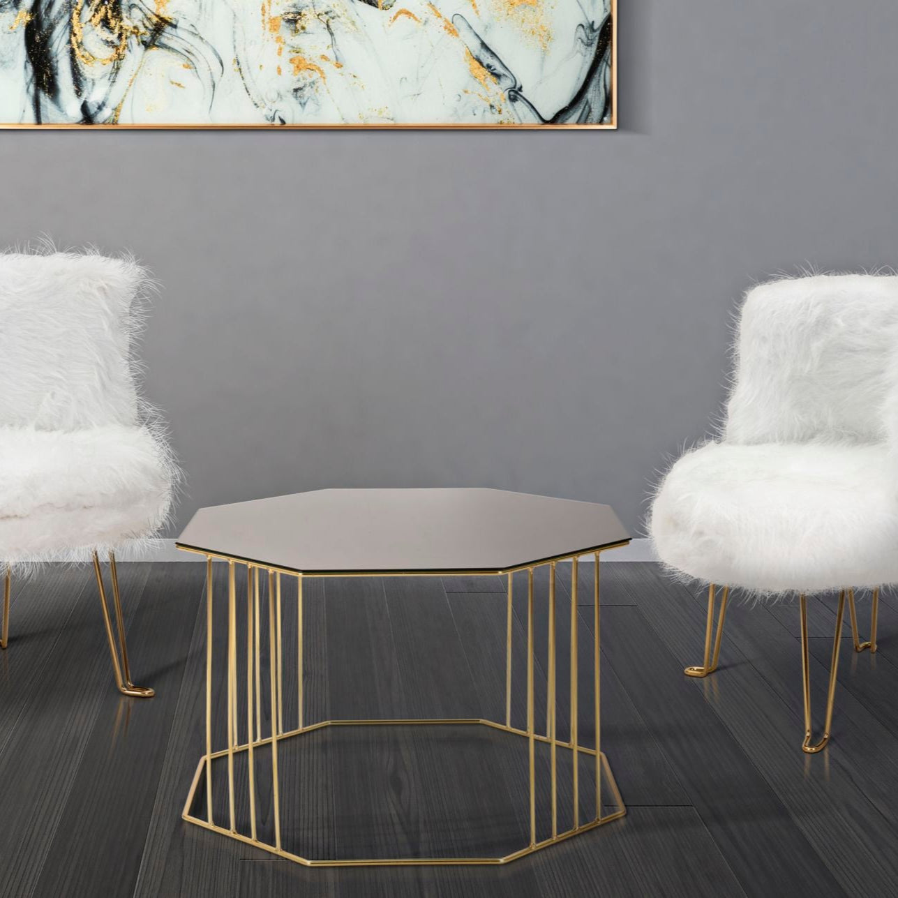 TAVOLINETTO DA CAFFE' OCTAGON - Tavolo da caffè ottagonale in metallo dorato con piano in vetro fumé, dal design semplice e lineare.