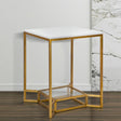 TAVOLINETTO DOUBLE MARBLE - Tavolo da caffè quadrato in metallo dorato con piano in marmo bianco e ripiano inferiore in vetro. Le linee geometriche e squadrate della struttura in metallo dorato si fondono alla perfezione con l'eleganza del vetro e del marmo bianco per rendere speciale ogni living.