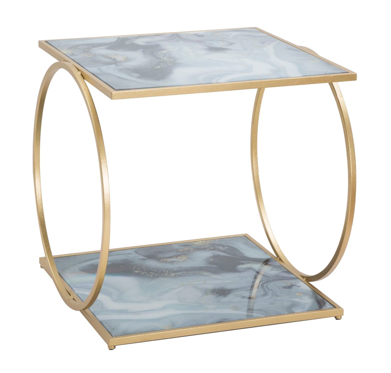TAVOLINETTO GLAM 2 LEVEL - Tavolinetto quadrato in metallo dorato con top e ripiano in marmo. Il semplice disegno geometrico dona un tocco di classe ad ogni ambiente mantenendo una leggerezza d'insieme.