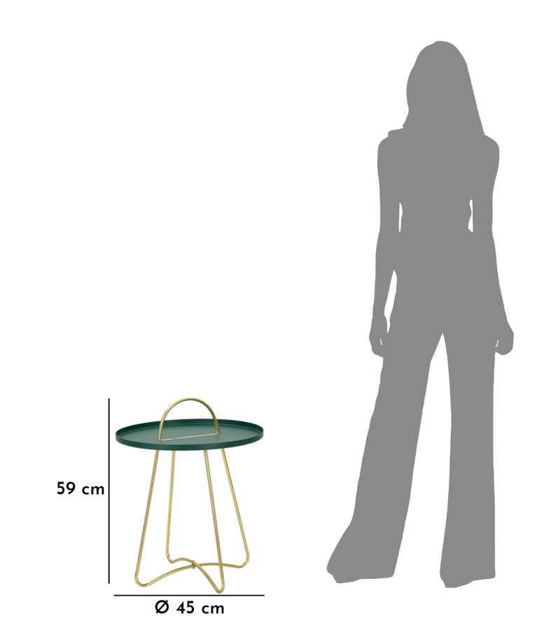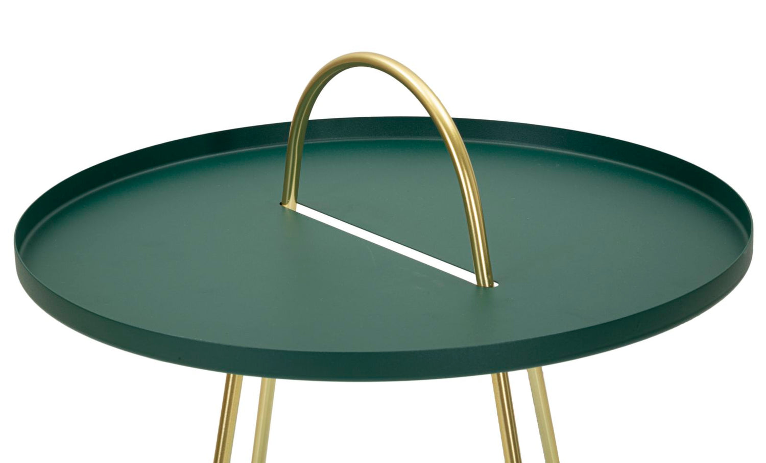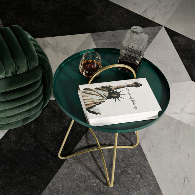TAVOLINETTO GRENT - Elegante tavolino verde satinato con gambe dorate, perfetto per aggiungere un tocco di raffinatezza e modernità a qualsiasi ambiente.