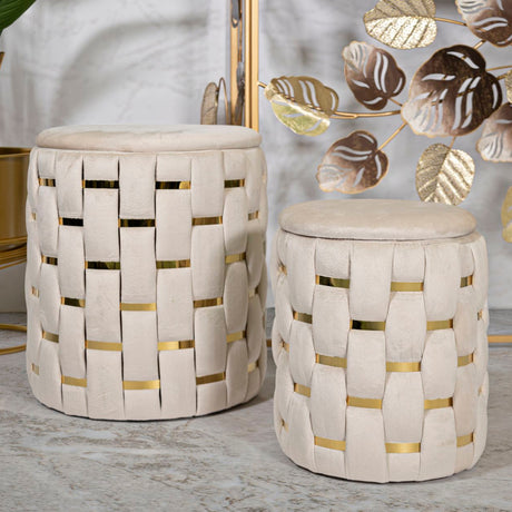 PUFF C/CONTENITORE SAINT-MORITZ CREMA SET 2 PZ CM - FERRETTI