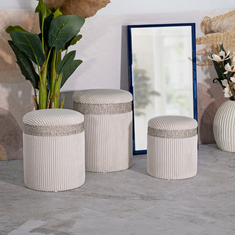 PUFF C/CONTENITORE CORTINA CREMA SET 3 PZ - FERRETTI